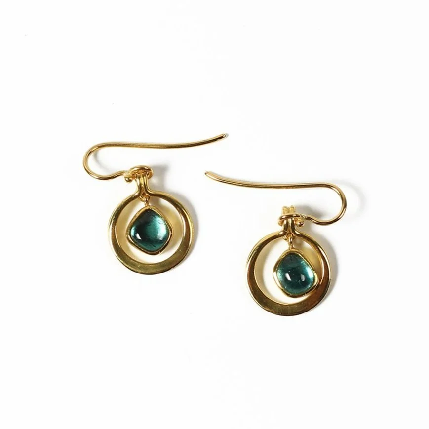 planished link with blue green tourmaline earrings
